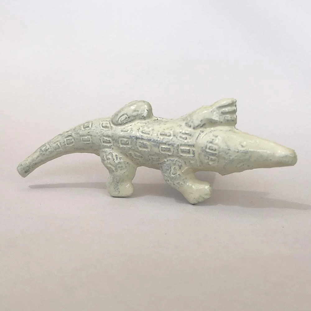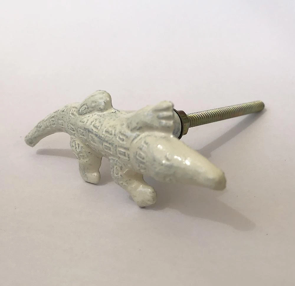 Charming Metal Crocodile Drawer Pull. White ceramic glaze on metal. Beautifully designed drawer pull. A lovely addition to your little ones room.  Handmade.Â